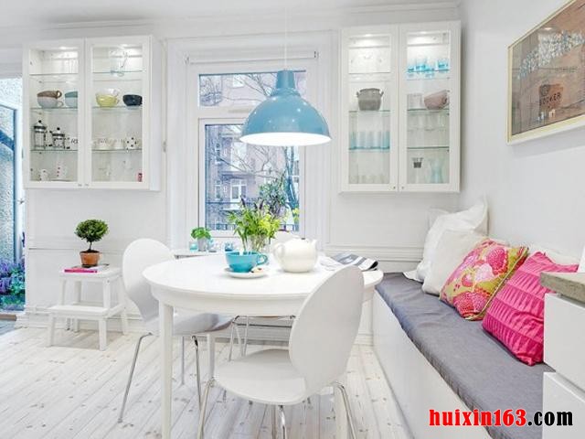 本案所示是70平米二居室现代简约风格装修效果图,预算为5万,工程类型为半包。此套设计遵循现代简约风格的具本特征,根据空间和户型优势,利用色调的变幻和线条的勾勒,力求营造出简洁明快、温馨浪漫的居室环境。此案例中,整体色调以白色为基调,家具配饰的选择也与主基调相协调,除了卫浴地面处理采用大理石材质外,其它房间的地面处理采用木质结构,并且通体刷成与整体相协调的白色,使整个设计看起来更加流畅自然,浑然一体。