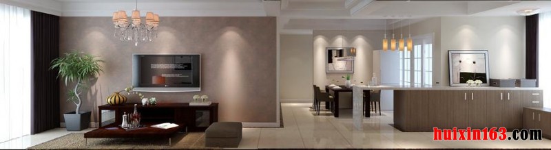 石膏板吊顶,优雅的水晶吊灯悬挂在客厅吊顶中央,石膏线装饰。洁净的沙发背景墙,装饰画装饰,深棕绿色简约布艺沙发,多色靠枕装饰,浅色地板砖铺地,棕色毛地毯过渡,造型简约的酒红色茶几,结构简单,时尚大方。棕色花纹墙壁纸打造的电视背景墙,挂壁式电视机,做工精细、典雅大气的深红色木质电视柜搭配,小摆件及小盆栽装饰,墙角绿植点缀,造就出了宁静优雅、简洁舒适的现代生活家居。